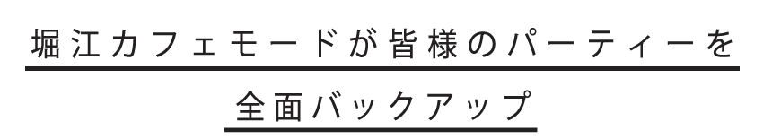 心斎橋、堀江、四ツ橋のレストランウェディング、1.5次会の会場におすすめのイタリアン「堀江カフェモード」。ゲストが重視するものの一つ、お料理はレストランのこだわりをそのままに、オーナーシェフオリジナルのメニューをご用意いたします。